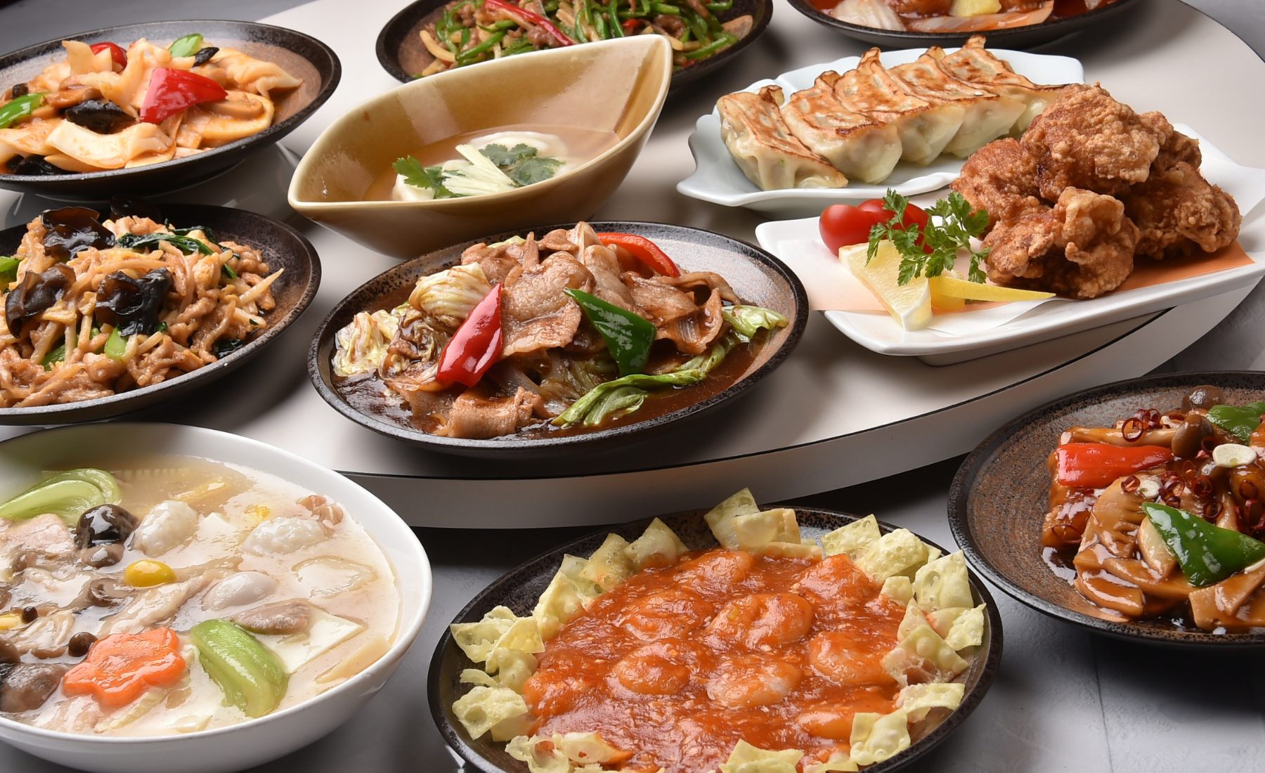 おすすめの中華小皿がなんと50品も食べ放題!餃子はもちろん、麻婆豆腐や油淋鶏など、多彩な中華料理を思う存分楽しめます。