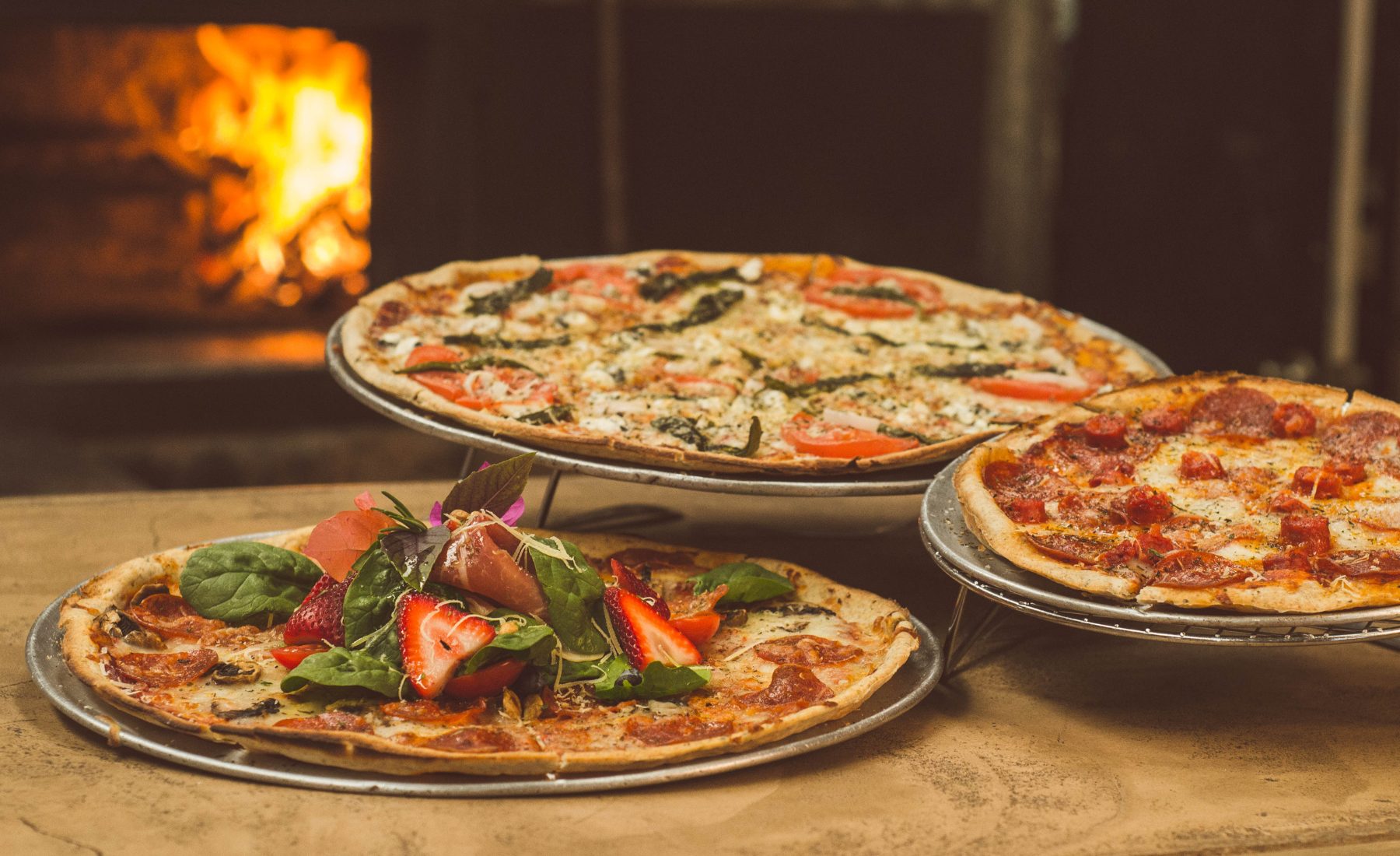 鶏肉と丹波野菜のレモンバターソースは一番人気で、ナポリから輸入した窯で焼き上げるピザも好評です。