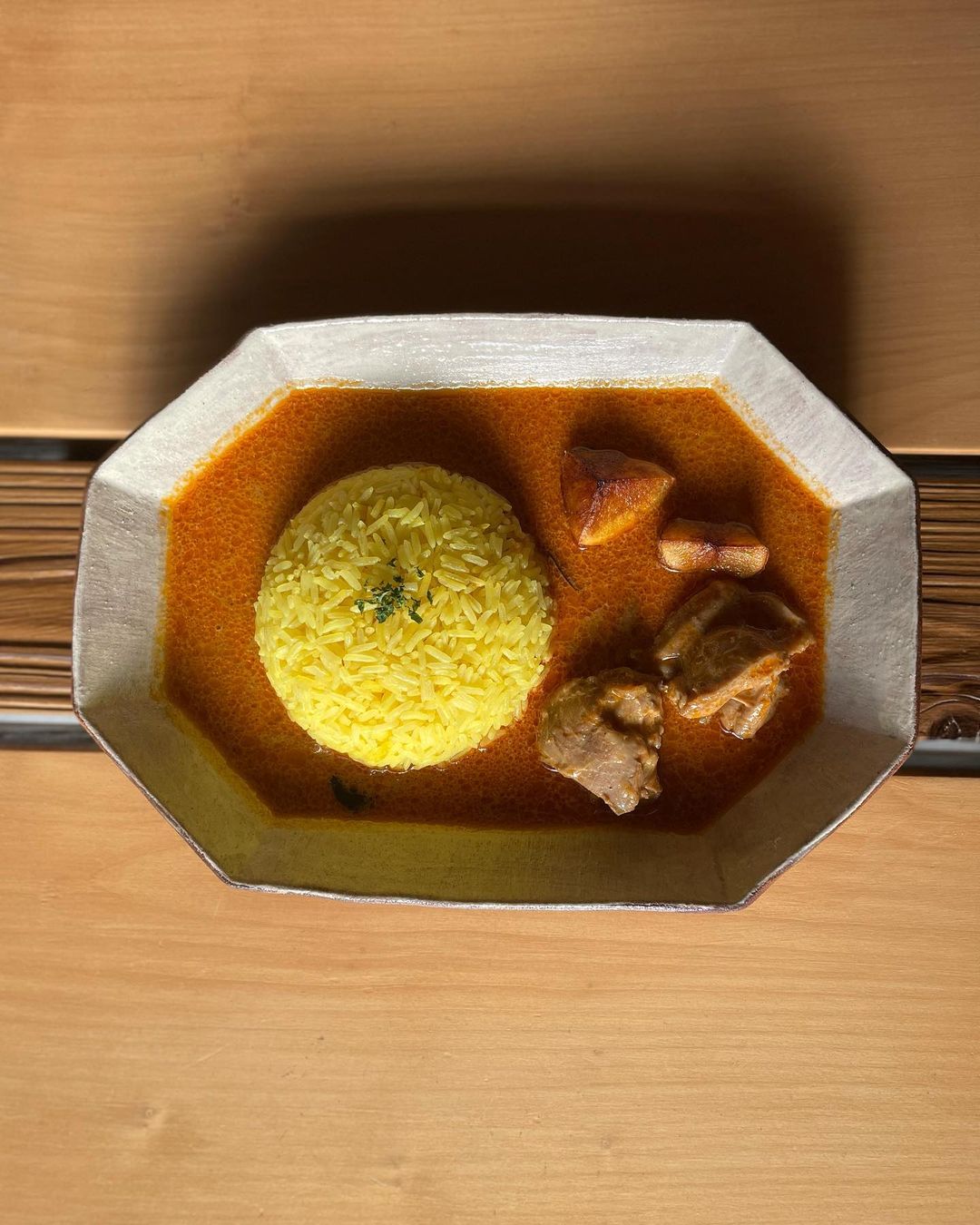 子供から大人まで楽しめる味わいのカレーは、スパイスの香りと深みのある味が特徴です。