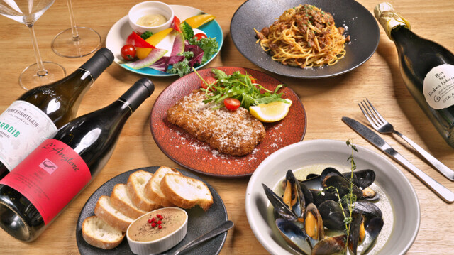 毎日異なるワインとともに、開放的でモダンな空間でお食事をお楽しみいただけます。