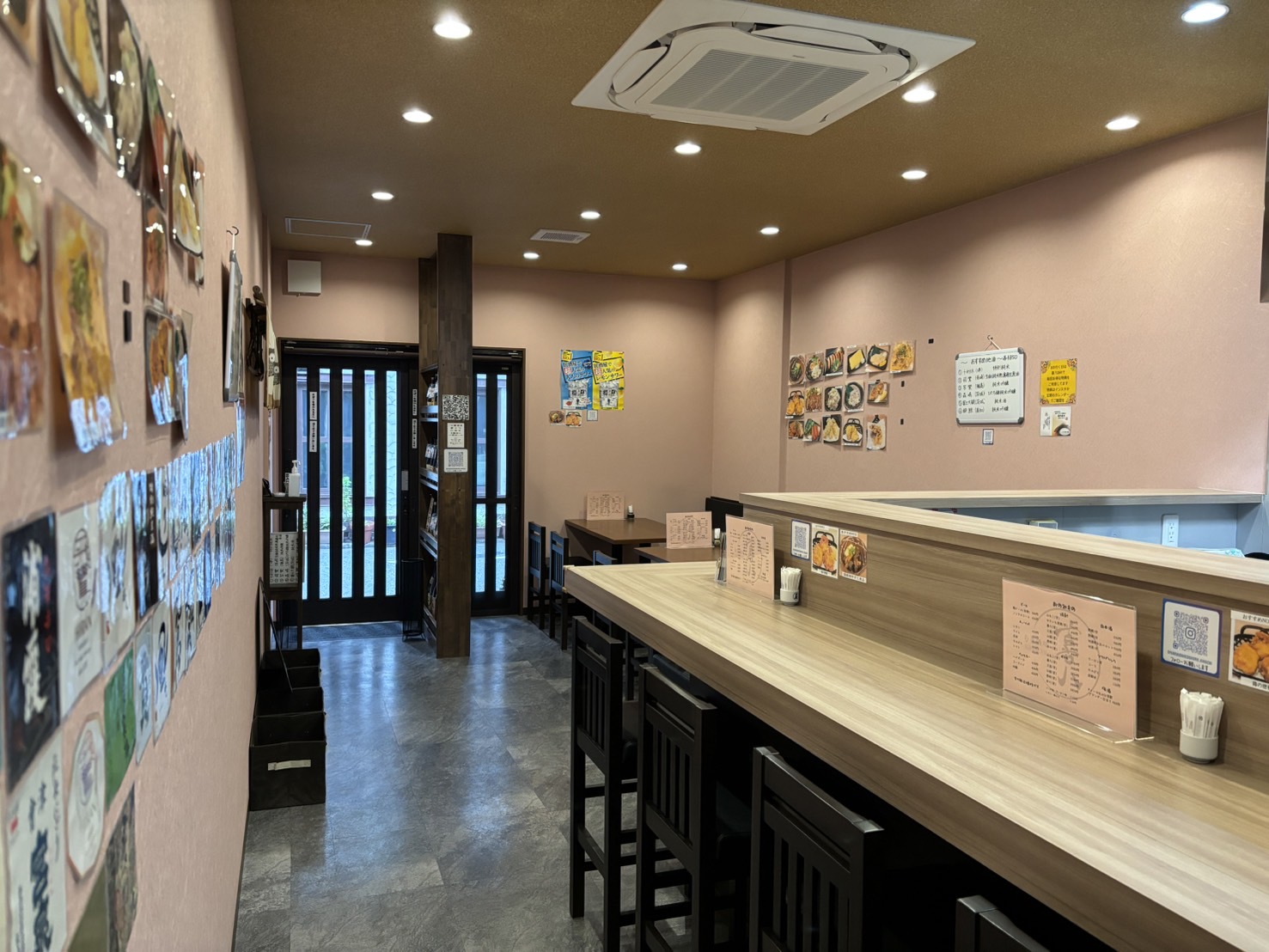 店内はサーモンピンクを基調とした落ち着いた雰囲気で、
