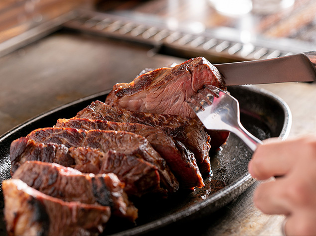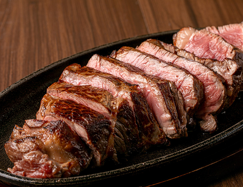 鉄板で焼き上げる肉は旨味が凝縮され、絶品です。