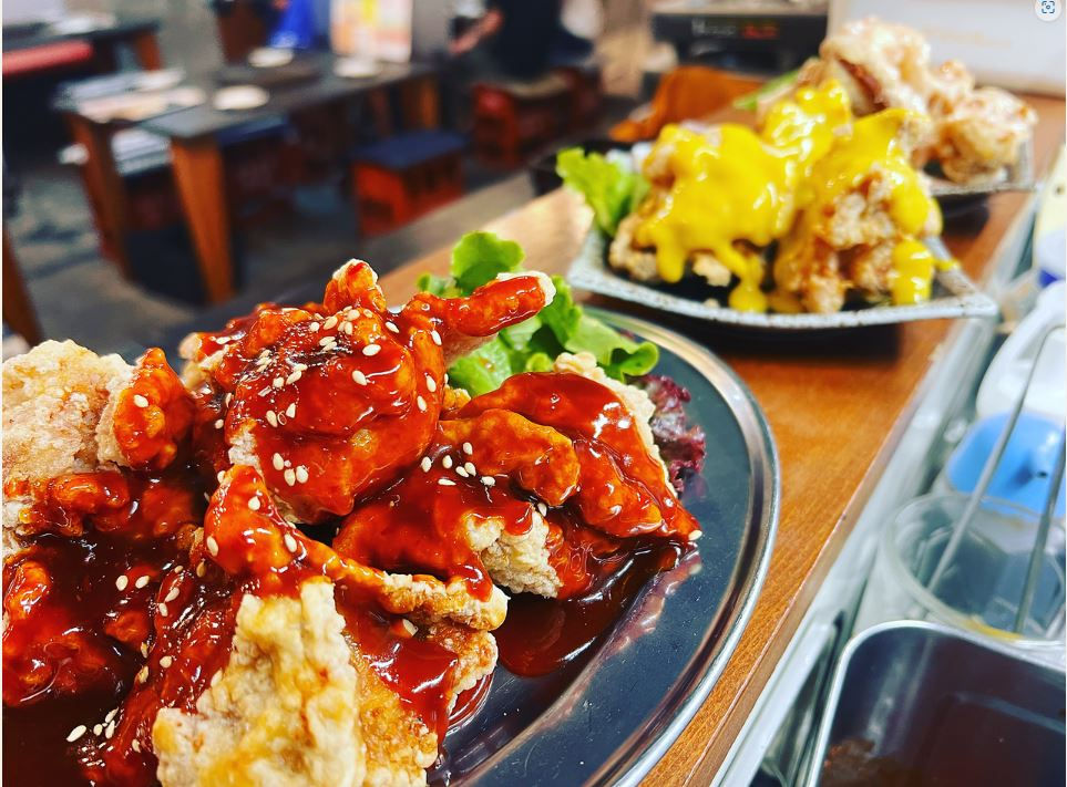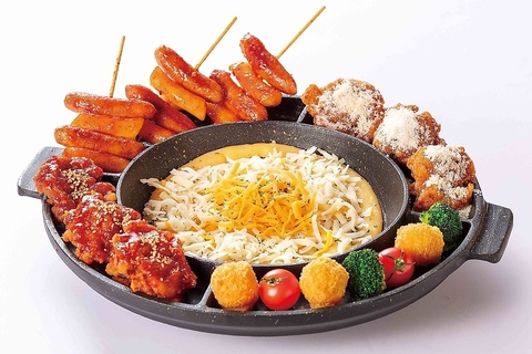 丸ごとカマンベールチーズが印象的なピリ辛鍋や、唐揚げをチーズにディップして楽しむモッパンUFOなど、若い女性に人気のメニューが満載です。