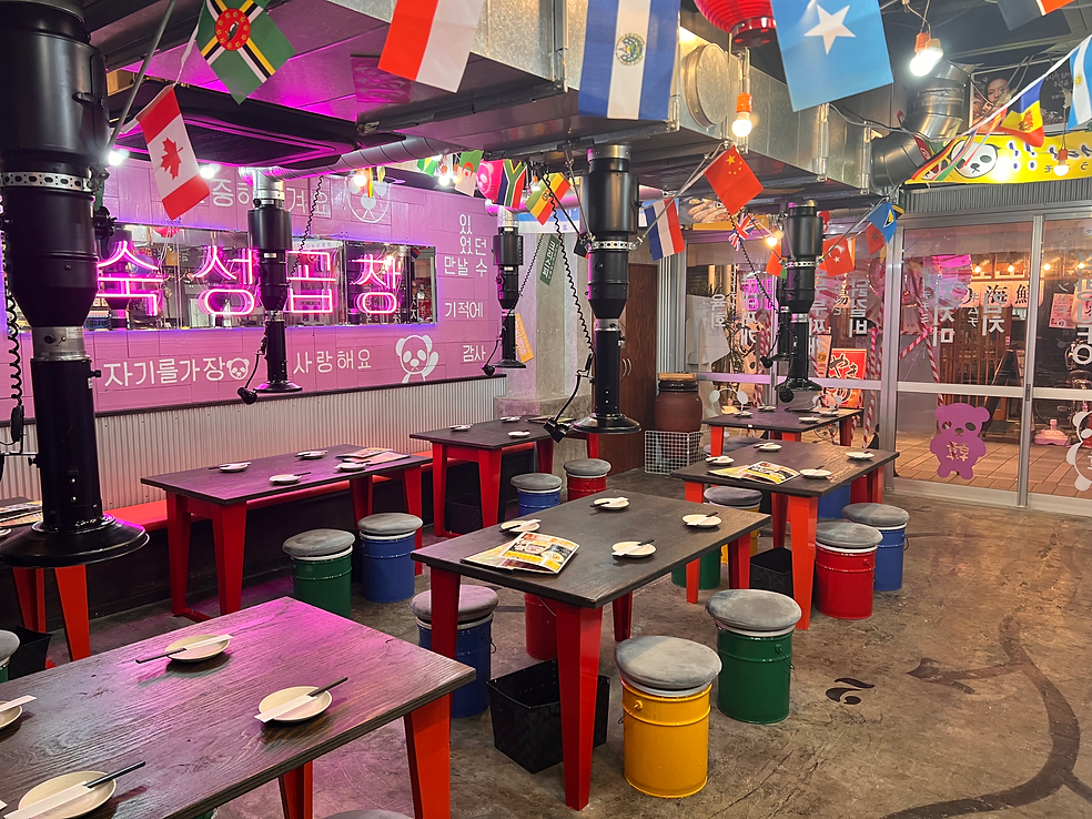 ピンクのネオンに包まれた店内は、K-POPが流れ、まるで韓国旅行をしているような気分にさせてくれます。