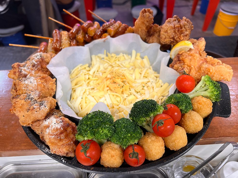 見た目にも楽しいモッパンUFO♪クリスピーチキンのフレーバーは6種類から2つチョイス!クリスピーチキンやチーズボールや、ソットックなど人気商品にトロトロチーズをディップしながら食べると、盛り上がること間違いなしの一台です♪