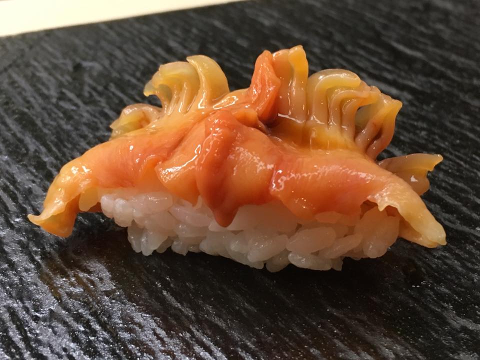 職人が一貫ずつ丁寧に握る寿司は、新鮮な貝の豊かな風味が口いっぱいに広がる逸品です。