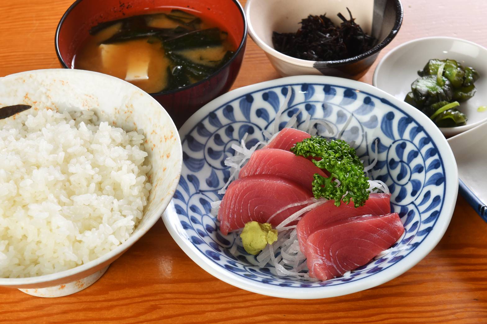 マグロ定食をはじめとする和食メニューは、手頃な価格でご提供。